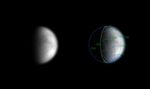 The Cassini spacecraft was 29.3 million kilometers (18.2 million miles) from Titan on May 5, 2004, when the image on the left was taken through one of the narrow angle camera's spectral filters specifically designed to penetrate the moon's thick atmosphere. The image scale is 176 kilometers (109 miles) per pixel, an improvement in resolution of 30 percent over the images released on May 6.