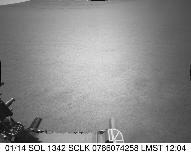 NASA's Perseverance Mars rover captured this view of slippery terrain while ascending to the rim of Jezero Crater on Nov. 28, 2024, the 1,342nd Martian day, or sol, of the mission. This black-and-white video was captured by the rover's front-right navigation camera.