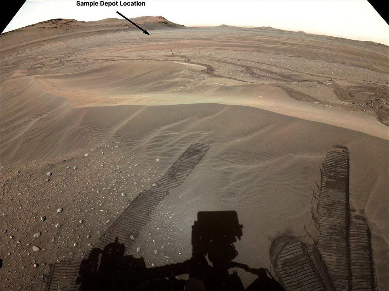 The location where NASA's Perseverance will begin depositing its first cache of samples is shown in this image taken by the Mars rover on Dec. 14, 2022.