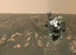 There are several versions of this selfie. In addition to a full image showing the rover looking at the camera, there is a full image showing the rover looking down at the Ingenuity helicopter (Figure 1); an "over the shoulder" view of the rover looking at the camera (Figure 2); an "over the shoulder" view looking at the Ingenuity helicopter (Figure 3); a rover self-portrait (Figure 4); a GIF showing the sequence in which the 62 individual images that make up the selfie were taken (Figure 5); and an animated GIF showing the rover looking at the camera and then back at the Ingenuity helicopter.
