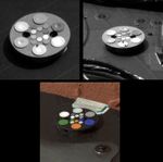 These images of three Phoenix color targets were taken on sols 1 and 2 by the Surface Stereo Imager (SSI) on board the Phoenix lander. The bottom target was imaged in approximate color (SSI's red, green, and blue filters: 600, 530, and 480 nanometers), while the others were imaged with an infrared filter (750 nanometers). All of them will be imaged many times over the mission to monitor the color calibration of the camera. The two at the top show grains 2 to 3 millimeters in size that were likely lifted to the Phoenix deck during landing. Each of the large color chips on each target contains a strong magnet to protect the interior material from Mars' magnetic dust.