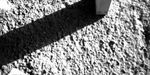 The Robotic Arm Camera on Phoenix took this image on the morning of Sol 99 after the probe was lifted away from the soil. The imprint left by the insertion is visible below the probe, and a shadow showing the probe's four needles is cast on a rock to the left.