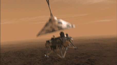 The spacecraft will have slowed to about 56 meters per second (125 miles per hour) by the time it separates from the parachute, about a kilometer (six-tenths of a mile) above the ground.