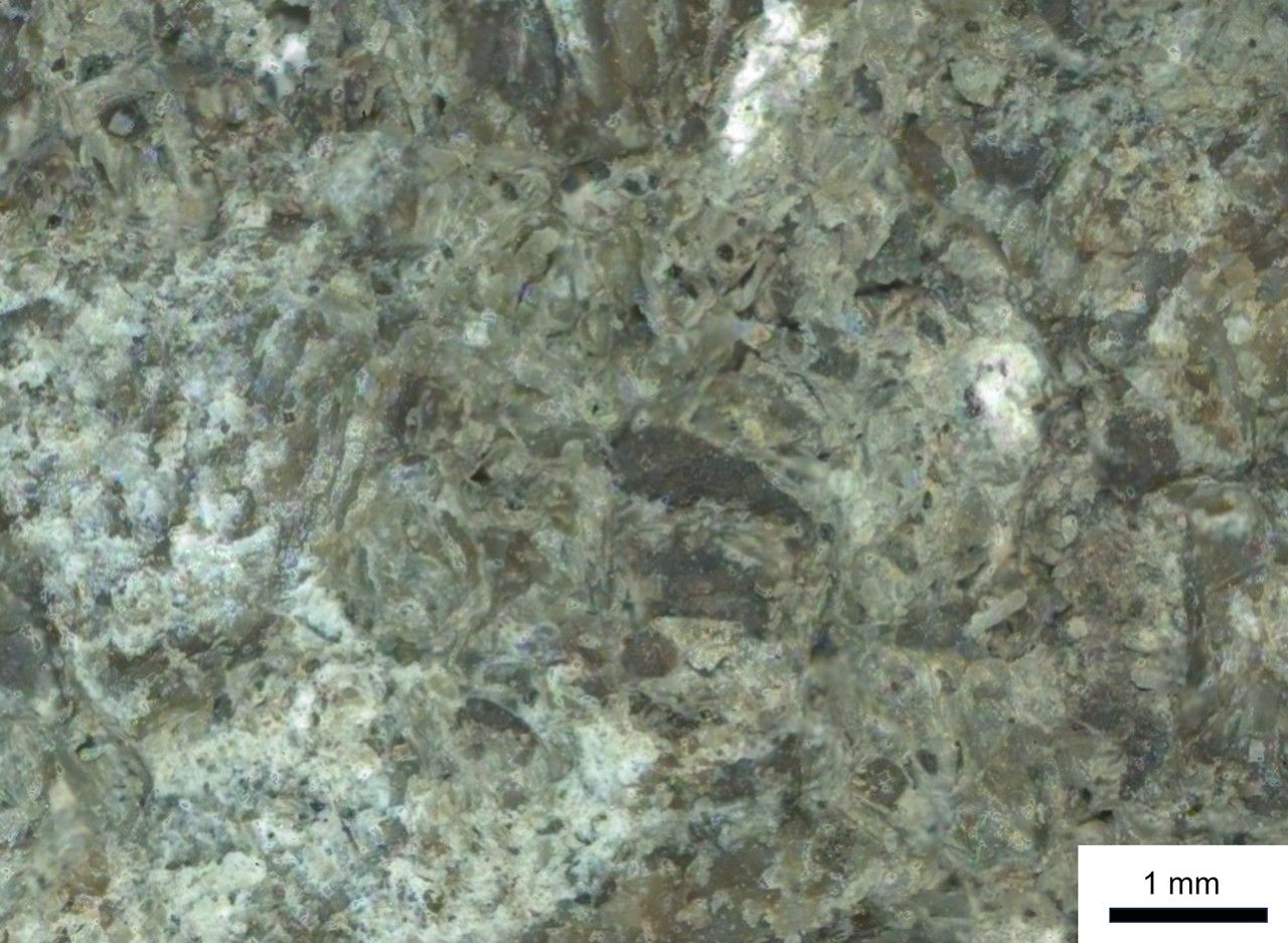 The image was taken by PIXL's camera, the Autofocus and Context Imager, or ACI. Color was added by overlaying data from WATSON (Wide Angle Topographic Sensor for Operations and eNgineering), a pair of cameras that are part of an instrument called Scanning Habitable Environments with Raman & Luminescence for Organics & Chemicals, or SHERLOC.