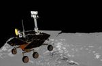 This three-dimensional model superimposes the Mars Exploration Rover Opportunity on one of its potential targets, a scientific treasure chest of martian rocks contained within the landing site, a crater on Meridiani Planum, Mars. The rover is placed on the rock outcrop for scale. Opportunity has not yet visited these rocks; it is currently still on its lander. Scientists plan to use the tools on the rover's instrument deployment device, or robotic "arm," to examine these rocks, which are about 10 centimeters (4 inches) high and approximately 8 meters (26 feet) away from the rover. The image of the terrain was acquired on Sol, or martian day, 2 of Opportunity's journey. This model was created using data from the rover's panoramic camera and is displayed using software developed by NASA's Ames Research Center.