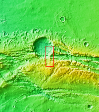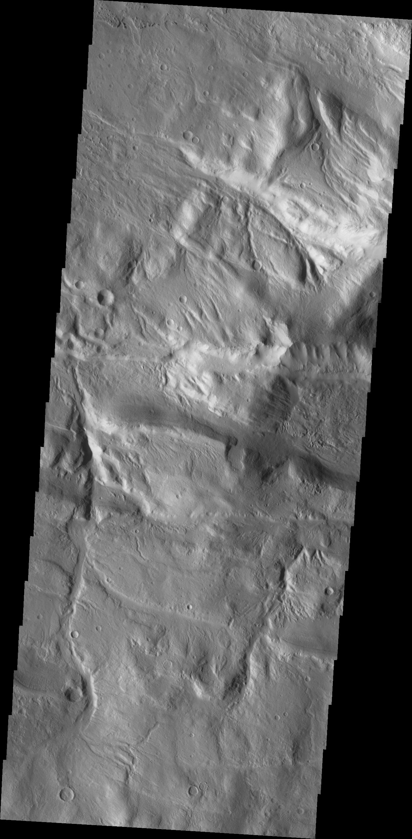 Channels dissect the complex region of Acheron Fossae, located north of Olympus Mons.