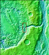 Today's VIS image shows part of Aram Chaos right at the outflow channel that connects to Ares Vallis. Aram Chaos was initially formed by a large impact. Over time the crater interior was modified by several different processes, including liquid water. This narrow channel links the Aram Chaos crater with the northward flowing Ares Vallis and indicates a substantial amount of water was located in the crater. Aram Chaos is 280 km (175 miles) in diameter.