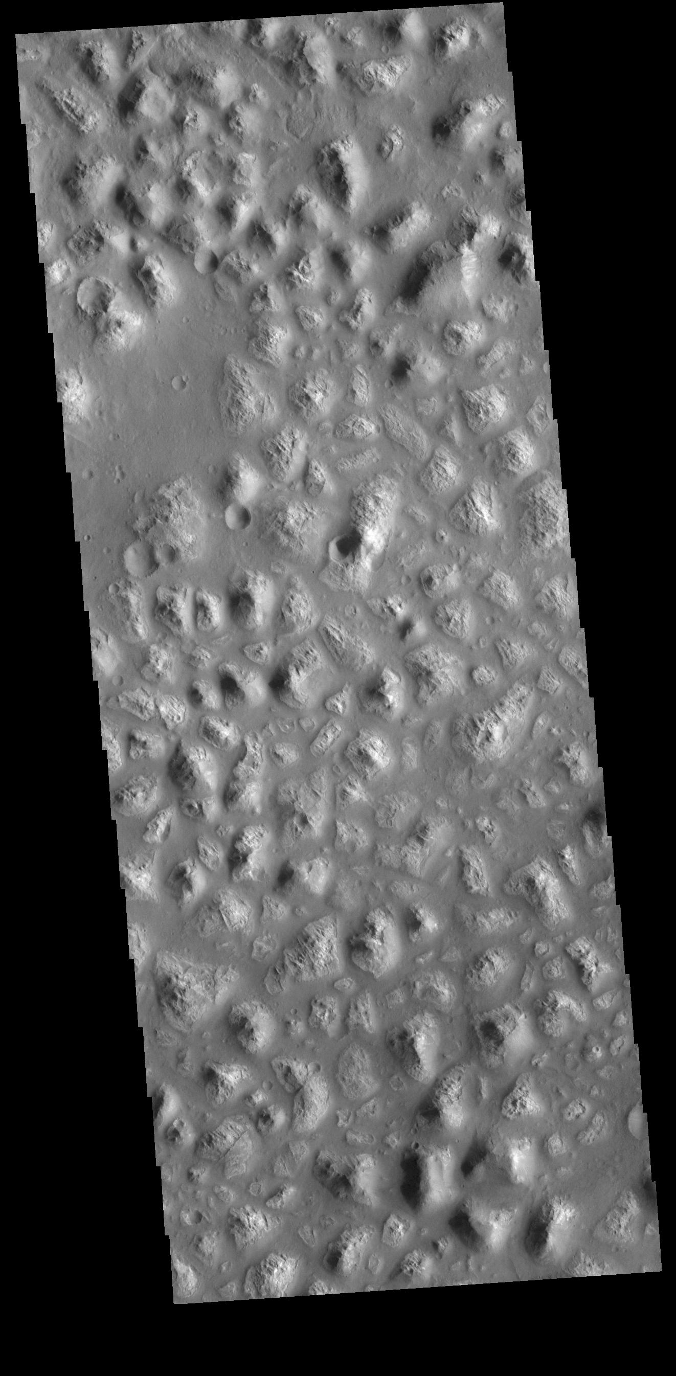Today's VIS image shows part of Ariadnes Colles. The term colles means hills or knobs. The hills appear brighter than the surrounding lowlands, likely due to relatively less dust cover. Ariadnes Colles is located in Terra Cimmeria.