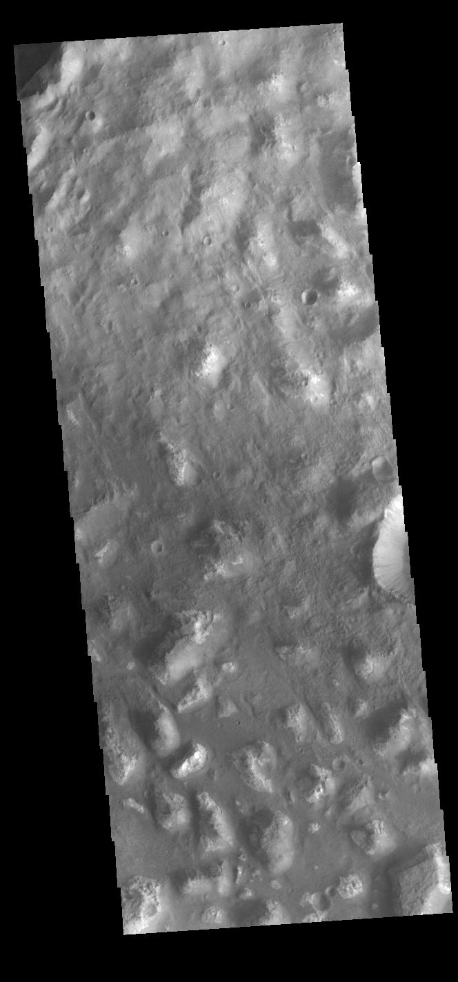 Today's VIS image shows part of Ariadnes Colles. The term colles means hills or knobs. The hills appear brighter than the surrounding lowlands, likely due to relatively less dust cover. Ariadnes Colles is located in Terra Cimmeria.