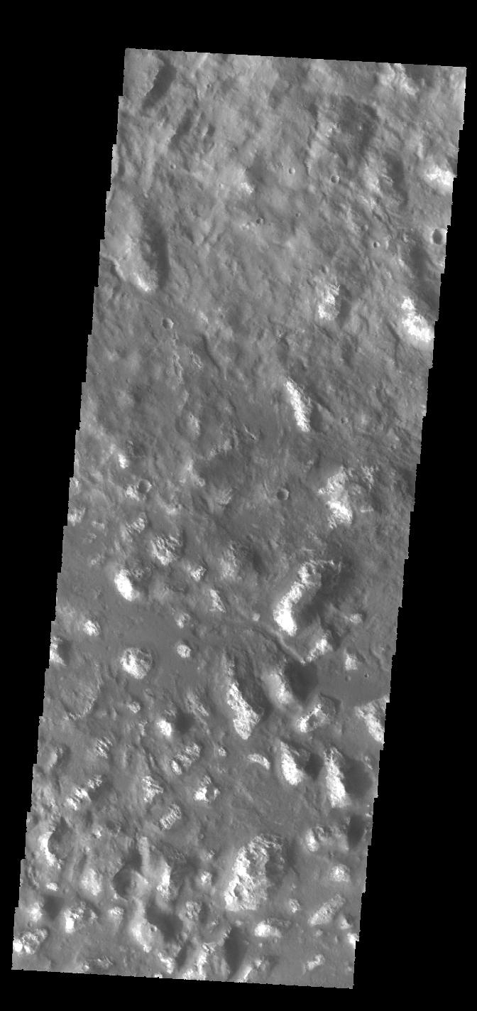 This VIS image shows part of Ariadnes Colles. The term colles means hills. The hills in this image are much brighter than the surroundings, possibly due to erosion or removal of the darker material from the upper elevations of the hills.