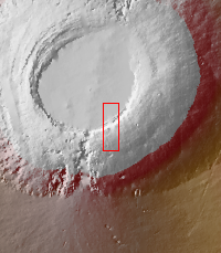 This VIS image shows part of the summit caldera on Arsia Mons.