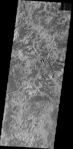 Note: this THEMIS visual image has not been radiometrically nor geometrically calibrated for this preliminary release. An empirical correction has been performed to remove instrumental effects. A linear shift has been applied in the cross-track and down-track direction to approximate spacecraft and planetary motion. Fully calibrated and geometrically projected images will be released through the Planetary Data System in accordance with Project policies at a later time.