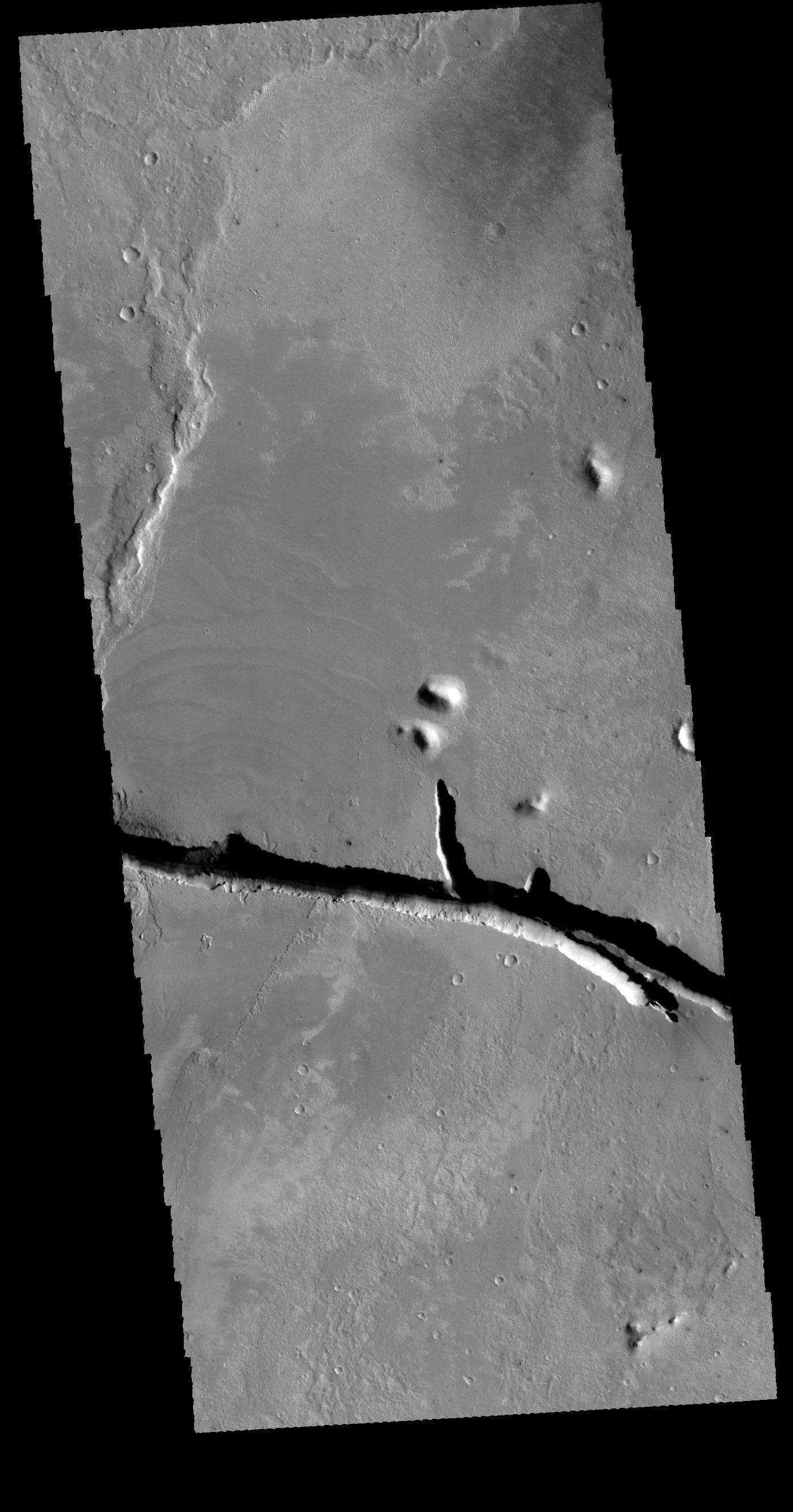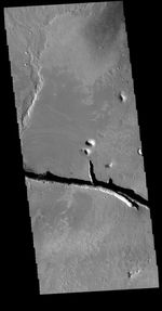 Today's VIS image shows a portion of Cerberus Fossae. The fossae are linear depressions, called graben, created by tectonic activity.