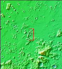 The linear depressions in the middle of this VIS image are graben called Cerberus Fossae. Graben form where extensional tectonic forces allows blocks of material to subside between paired faults. Cerberus Fossae are located in Elysium Planitia, southeast of the Elysium Mons volcanic complex.