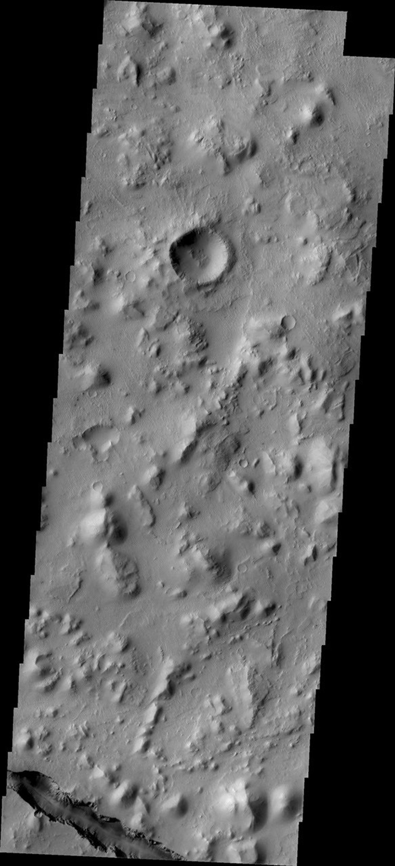 One of the tectonic fractures of Cerberus Fossae is visible at the bottom of this VIS image.