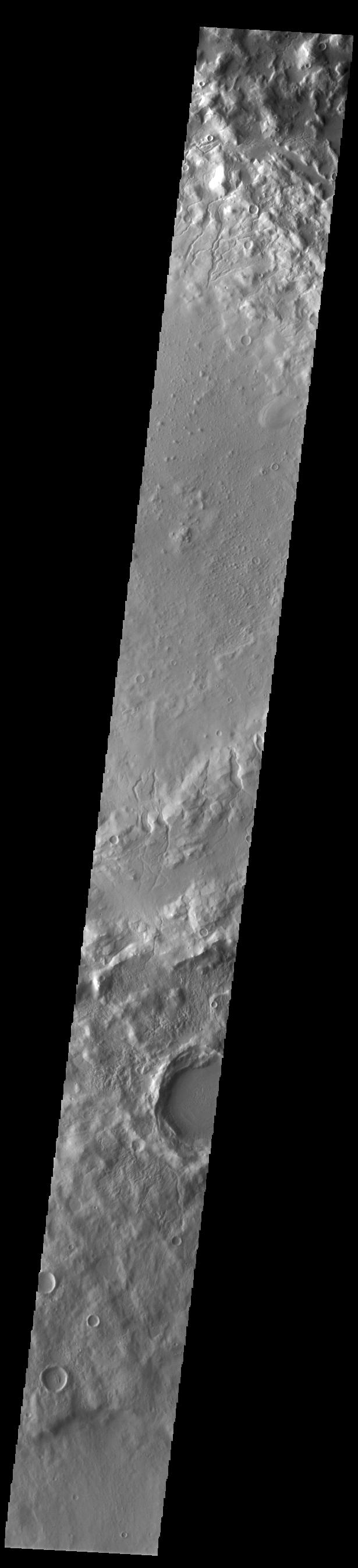 Today's VIS image shows part of Cerulli Crater. Located in northern Arabia Terra, Cerulli Crater is 114km (71 miles) in diameter. The crater rim is dissected by numerous small channels.