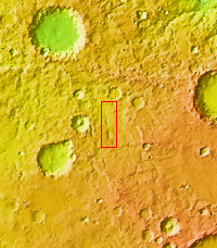 This huge (or mega) gully is part of Noctis Labyrinthus. Located on the western end of Valles Marineris, Noctis Labyrinthus is a huge region of tectonically controlled valleys. The valleys are not as deep as Valles Marineris.