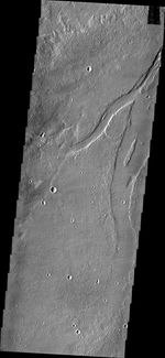 The channel on the right side of today's VIS image is located in the volcanic plains southeast of Alba Mons.