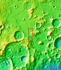 This unnamed channel is located in Terra Sabaea, near Hellas Planitia.