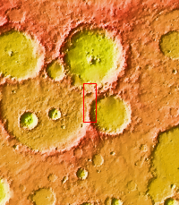 The small channel at the top of this VIS image is located on the rim of an unnamed crater in Terra Sabaea.