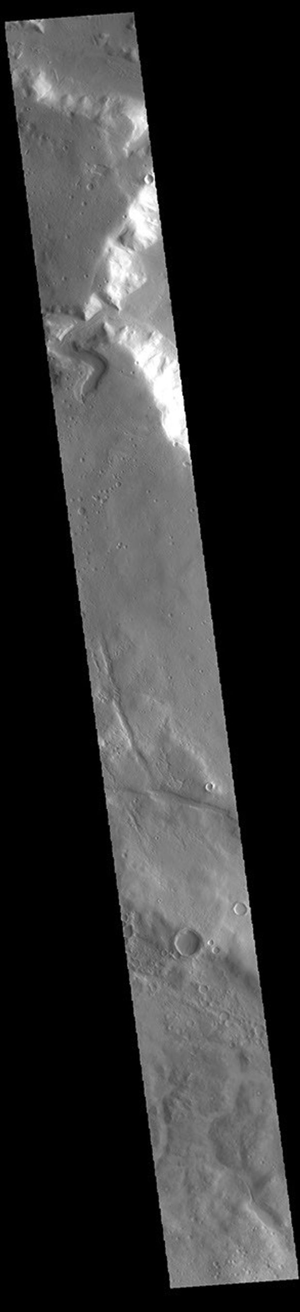 Near the top of today's VIS image is a small unnamed channel. This channel is located along the topographic boundary between highlands of Terra Sabaea and lowlands of Protonilus Mensae.