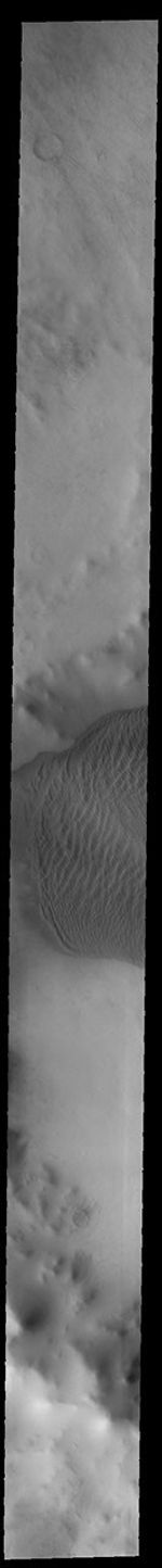 This VIS image shows part of the large sand sheet with surface dune forms on the floor of Charlier Crater in Terra Sirenum.