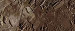 This image shows a close-up view of terrain within the region of Europa's surface named Conamara. This region sports ice rafts that look like those at Earth's poles, where large chunks of ice break away and float freely on the ocean. Much of the region bears the reddish/brownish discoloration seen here – the same as seen along many of Europa's fractures. Scientists believe this material may contain clues about the composition of an ocean beneath the icy surface, if it is proven to exist.