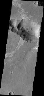 This image from NASA's 2001 Mars Odyssey spacecraft shows the shallower extension of Coprates Chamsa called Coprates Catena.