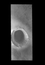 A sand sheet with surface dune forms covers the floor of this unnamed crater near the north pole.