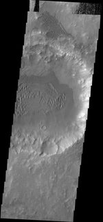 This VIS image shows dunes in and around a crater located on the floor of the much larger Herschel Crater.