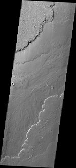 Today's VIS image shows different surface textures in some of the lava flows of Daedalia Planum.