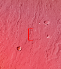 Today's VIS image shows a small portion of the immense lava flows that originated from Arsia Mons. Arsia Mons is the southernmost of the three large aligned volcanoes in the Tharsis region. Arsia Mons' last eruption was 10s of million years ago. The different surface textures are created by differences in the lava viscosity and cooling rates. The lobate margins of each flow can be traced back to the start of each flow — or to the point where they are covered by younger flows. Flows in Daedalia Planum can be as long as 180 km (111 miles).