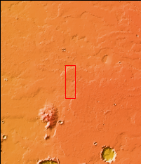 Today's VIS image shows a small portion of the immense lava plains of Daedalia Planum. These flows originated from Arsia Mons, one of the three large Tharsis volcanoes.