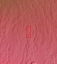 Today's VIS image shows part of the extensive volcanic flows that make up Daedalia Planum. The different layers and surface textures are due to flows at different times, or the affect of cooling as the flow narrows and extends far from the lava source. Daedalia Planum volcanic flows originate at or near Arsia Mons.