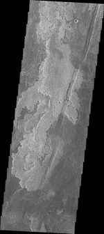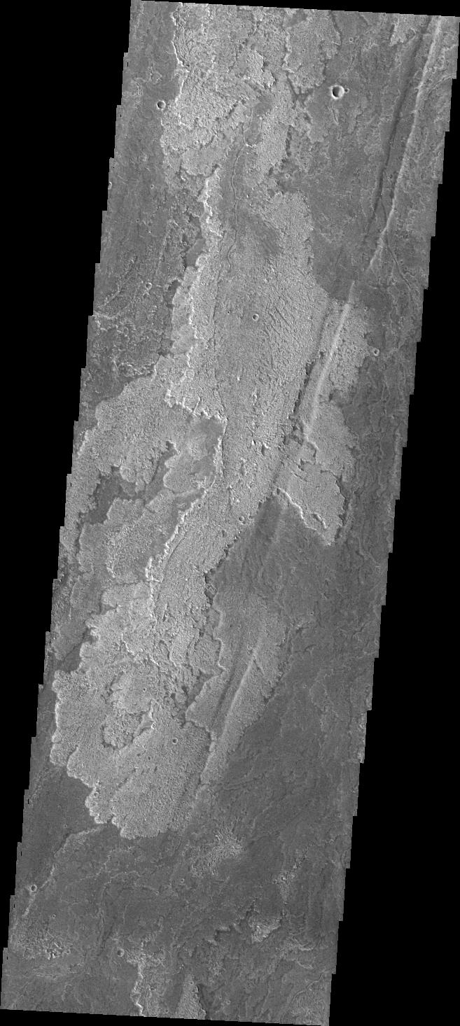 Today's image shows just one of the many lava flows that make up Daedalia Planum. Theses volcanic flows are from Arsia Mons, the southernmost of the three Tharsis Montes.