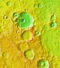 Dark slope streaks mark the rim of this unnamed crater in Terra Sabaea.