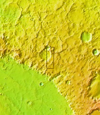 Dark slope streaks mark the inner rim of this unnamed crater in Terra Sabaea.