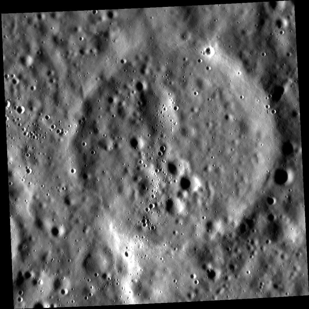 This small ghost crater lies in Mercury's northern volcanic plains. At some point after its formation, lava completely filled this crater. Only the hint of a rim has been left behind as proof that this crater exists.