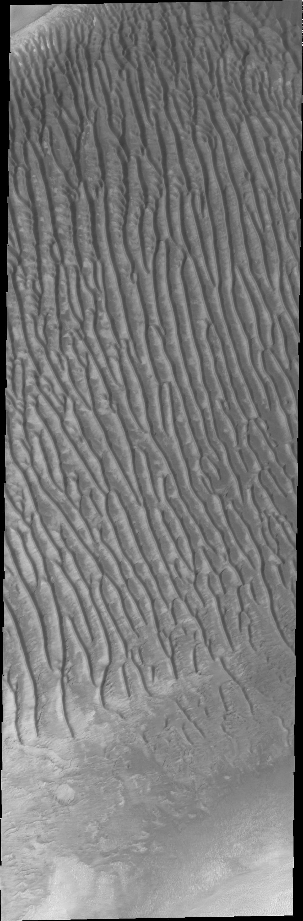 This VIS image shows the large dune field in Richardson Crater. Many craters around the south pole of Mars contain dune fields.
