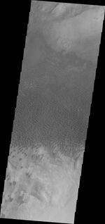 This VIS image shows dunes in a topographic low within Aonia Terra.