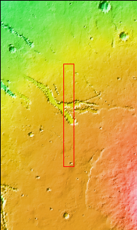Today's VIS image contains a section of one of the many channel forms found radial to the Elysium Mons volcanic complex. In this case the fossae are located to the west of Elysium Mons. Elysium Fossae are comprised of both linear and sinuous channels, usually interpreted to have both fluid and tectonic forces playing a part in the formation. The linear depression resembles a graben (formed by tectonic forces) and sinuous channels more closely resembles features caused by fluid flow – either lava or water created by melting subsurface ice due to volcanic heating. The Elysium Fossae system is 1044 km (649 miles) in length.