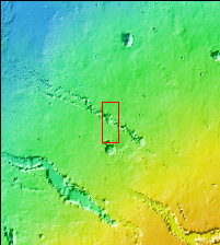 Today's VIS image contains a section of one of the many channel forms found radial to the Elysium Mons volcanic complex. In this case the fossae are located to the west of Elysium Mons. Elysium Fossae are comprised of both linear and sinuous channels, usually interpreted to have both fluid and tectonic forces playing a part in the formation. The linear depression resembles a graben (formed by tectonic forces) and sinuous channels more closely resembles features caused by fluid flow – either lava or water created by melting subsurface ice due to volcanic heating. The Elysium Fossae system is 1044 km (649 miles) in length.