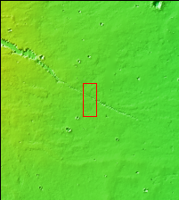 Today's VIS image shows a section of one of the graben that comprise Elysium Fossae. Graben are formed during tectonic activity, where blocks of material slide down between paired faults. Graben are common around volcanic regions on Mars. The rise of magma to the surface bows up the ground, creating the extensive forces that create graben.