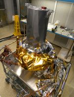 Included in the payload of science instruments for NASA's Europa Clipper is the Europa Imaging System (EIS) Narrow Angle Camera (NAC). Shown here at the Johns Hopkins Applied Physics Laboratory (APL) in Laurel, Maryland, the engineering model, which is used to test the instrument, is mounted on the two-axis gimbal mechanism that allows the NAC telescope to be pointed independently. The model consists of the NAC telescope, electronics, gimbal, and cables, covered in thermal blankets.