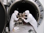 Included in the payload of science instruments for NASA's Europa Clipper is the Europa Imaging System (EIS) Wide Angle Camera (WAC). Here, mechanical engineers at the Johns Hopkins Applied Physics Laboratory (APL) in Laurel, Maryland, set up the engineering model of the WAC telescope and electronics in a thermal-vacuum chamber for environmental testing.