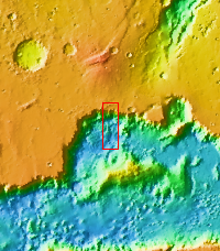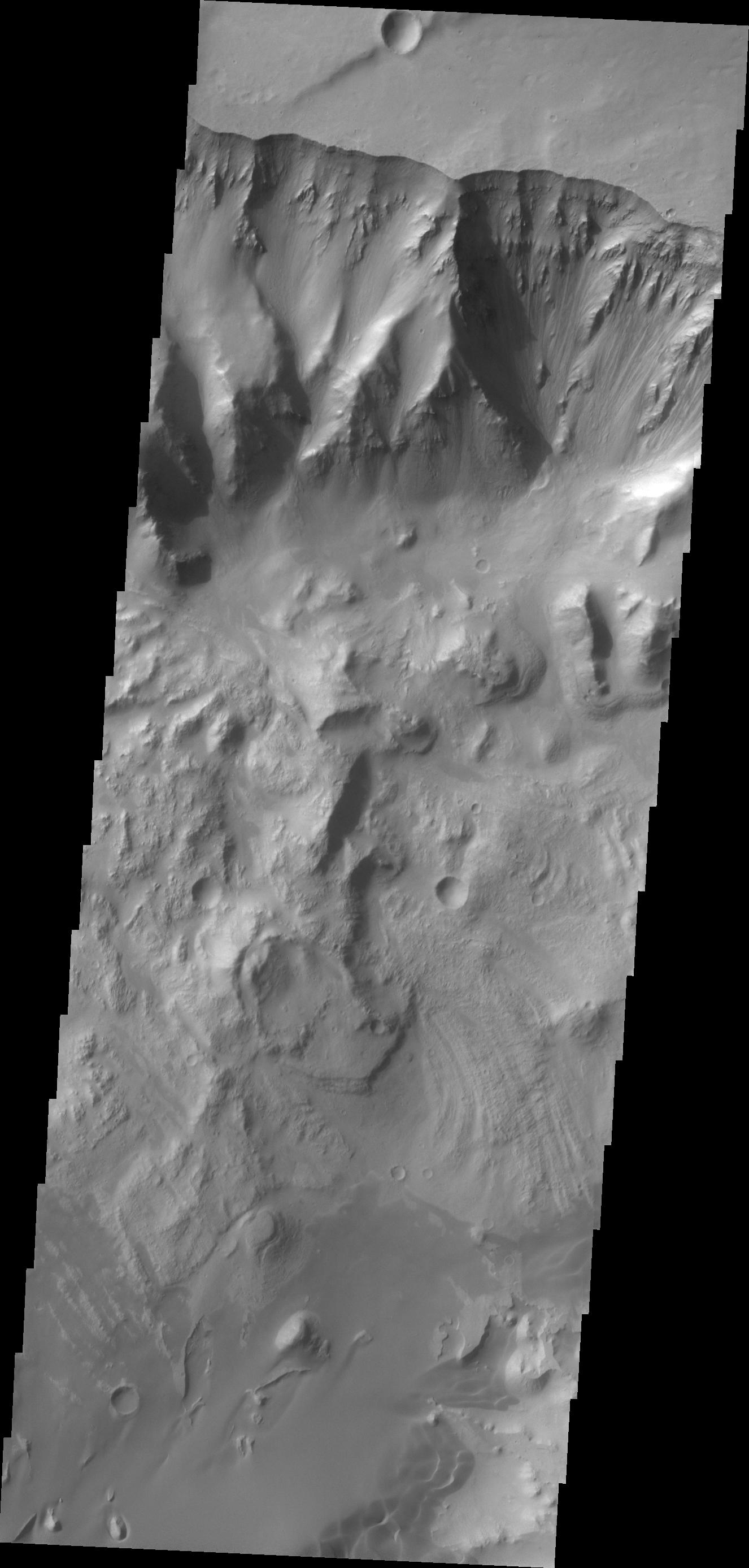This VIS image shows the northern wall of Ganges Chasma. Dunes and a landslide deposit of visible at the bottom of the image.