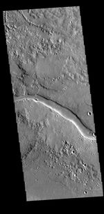 A section of Granicus Valles crosses the center of this VIS image. Granicus Valles is a complex channel system located west of Elyisum Mons. The channel system is approximately 750km long. It is likely that both water and lava played a part in creating the channel.
