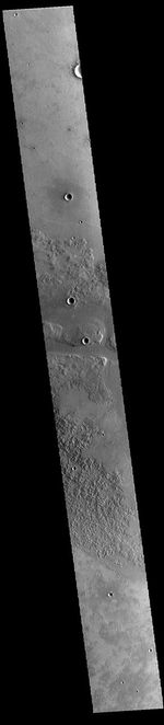 This VIS image shows one of the channels that comprise Granicus Valles. Granicus Valles is a complex channel system located west of Elysium Mons. The system is approximately 750km long (466 miles). It is likely that both water and lava played a part in creation of the feature.
