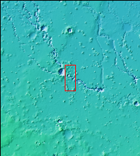 This VIS image shows part of Hephaestus Fossae. Hephaestus Fossae is a complex channel system in Utopia Planitia near Elysium Mons. It has been proposed that the channel formed by the release of melted subsurface ice during the impact event that created the crater just off the left side of the image – only the ejecta is seen in this image. The crater is fairly young, as there is only minimal modification of the crater floor. While it appears that the crater sits of top of the channel, the creation of the crater may have also created the channel. The impact event would have caused subsurface heating, melting any subsurface ice in the region which would have created surface flow to form the channel. Additionally, the nearby Elysium volcanic center created subsurface heating that may have played a part in creating both Hephaestus Fossae and Hebrus Valles to the north.
