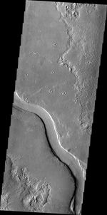 The channel in this VIS image is called Hrad Vallis. Hrad Vallis is located on the northwestern margin of the Elysium volcanic complex.